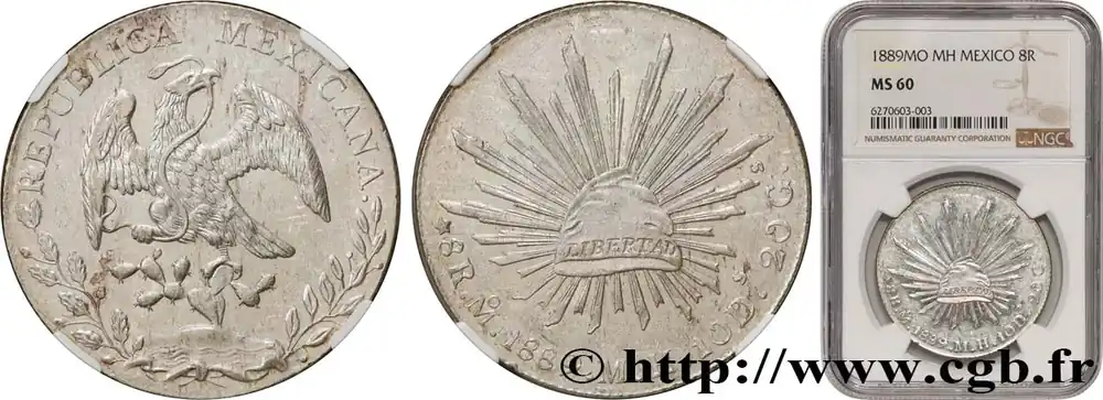Type : 8 RealesDate : 1809Nom de l’atelier/ville : SévilleMétal : argentTitre en millième : 900 ‰Diamètre : 39 mmAxe des coins : 12 h.Poids : 27,07 g.Tranche : chainéeSlabNGC : AUCommentaires sur l’état de conservation :Exemplaire sous coque NGC AU Details CleanedRéférence ouvrage :Cy15810 AversTitulature avers : FERDINANDUS VII. . DEI. G.// .1809..Description avers : Buste de Ferdinand VII à droite.Traduction avers : (Ferdinand VII par la grâce de dieu).ReversTitulature revers : HISPANIARUM. REX..Description revers : Ecu couronné écartelé en 1 et 4 de Castille, en 2 et 3 de Léon, sur le tout d’un écu de France accosté de R – 8 et S – C.N.Traduction revers : (roi d’Espagne).HistoriqueESPAGNE – ROYAUME D’ESPAGNE – FERDINAND VII(1808 puis 1814-1833) Fils de Charles IV et de Marie-Louise de Parme, il devient roi après le soulevement d’Aranjuez qui force Charles IV à abdiquer (19 mars 1808). Après l’occupation de Madrid par les troupes de Murat, il doit renoncer au trône le 10 mai 1808. Interné jusqu’en 1814, il revient et abolit la Constitution libérale de 1812. Il ne peut pas empêcher l’effondrement de l’empire espagnol et la révolte de Riego en 1820 le force à accepter un ministère libéral et à rétablir la Constitution de 1812. En réalité, il encourage les éléments royalistes et grâce à l’expédition française du duc d’Angoulême, il peut rétablir le pouvoir absolu dès 1823.
