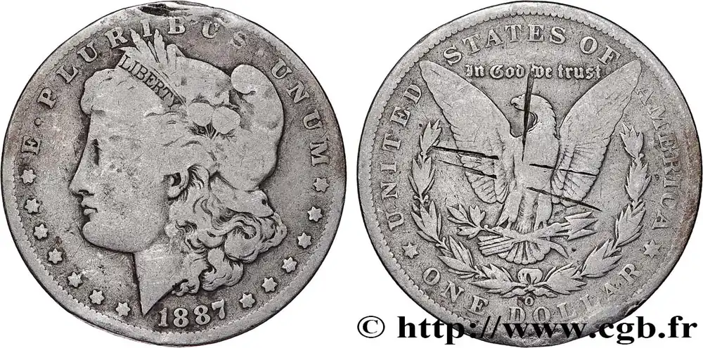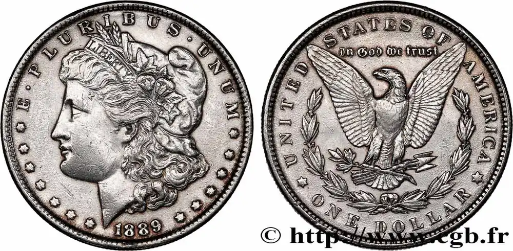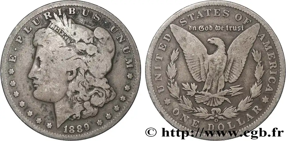 Type : 1 Dollar MorganDate : 1889Nom de l’atelier/ville : Nouvelle-Orléans – OQuantité frappée : 11875000Métal : argentTitre en millième : 900 ‰Diamètre : 38,10 mmAxe des coins : 6 h.Poids : 26,73 g.Tranche : canneléeSlabPCGS : AU50Commentaires sur l’état de conservation :Exemplaire sous coque PCGS AU50Référence ouvrage :KM.19/- – Y.- AversTitulature avers : E . PLURIBUS . UNUM // 1889.Description avers : tête à gauche de femme symbolisant la Liberté.ReversTitulature revers : UNITED – STATES OF – AMERICA // * ONE DOLLAR *.Description revers : aigle aux ailles déployées tenant une branche d’olivier et deux flèches ; couronne de laurier et motto “In God we trust”.CommentaireEn 1873, le « Fourth Coinage act » met fin au bimétallisme et les monnaies en argent sont démonétisées. Cependant dès 1876, de nombreux projets de lois sont proposés afin de réintroduire des dollars en argent. En 1878, Rutherford B. Hayes tente en vain de faire véto au «Bland-Allison Act » au Congrès. Dans cette optique, dès 1876, Henry Linderman, directeur de l’US Mint demande alors à C.W. Fremantle, deputy master de la Royal Mint de Londres, de lui trouver un graveur de coin de premier rang. Ce sera Georges T. Morgan (1845-1925) qui devient assistant graveur auprès du graveur en chef William Barber. Dès 1877, Morgan travaille sur des essais monétaires et prépare son projet de dollar argent. Ainsi en 1878, seulement une semaine après le passage de la loi, l’atelier de Philadelphie frappe des dollars dits « Morgan ». Georges T. Morgan Morgan succèdera à Charles E. Barber (fils de William Barber) en 1917.HistoriqueÉTATS-UNIS D’AMÉRIQUE