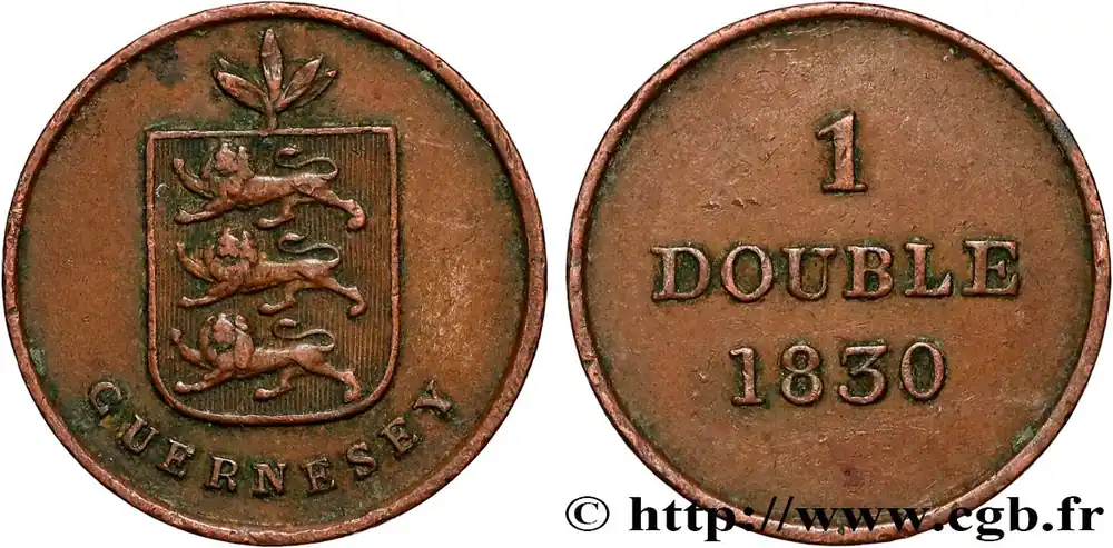 Type : 1 Double armes du baillage de GuerneseyDate : 1938Nom de l’atelier/ville : HeatonQuantité frappée : 96000Métal : cuivreDiamètre : 18,5 mmAxe des coins : 6 h.Poids : 2,24 g.Tranche : lisseRéférence ouvrage :KM.19/11 AversTitulature avers : GUERNESEY.Description avers : armes du baillage de Guernesey.ReversTitulature revers : 1 / DOUBLE / 1938 / H.Description revers : dans le champ.HistoriqueGUERNESEY