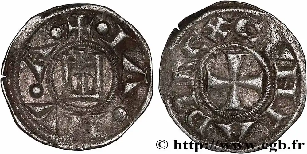 Type : DenierDate : 1512Nom de l’atelier/ville : KremnitzMétal : argentDiamètre : 15 mmAxe des coins : 8 h.Poids : 0,58 g.AversTitulature avers : *WLADISLAI* R* VNGAR* 1512, (PONCTUATION PAR UNE SIMPLE ROSE).Description avers : Écu.Traduction avers : (Ladislas, roi de Hongrie).ReversTitulature revers : *PATRONA* – *VNGARIE*, (PONCTUATION PAR UNE SIMPLE ROSE).Description revers : Vierge à l’enfant assise, coupant la légende en haut et en bas, accostés des lettes K et M.Traduction revers : (Patronne de la Hongrie).CommentaireL’écu du droit présente les deux armes de Hongrie, associées à celles de Dalmatie et de Bohême.HistoriqueHONGRIE – ROYAUME DE HONGRIE – LADISLAS VI(1490-1516) Ladislas II fut roi de Bohême à partir de 1471, puis roi de Hongrie sous le nom de Ladislas VI à partir de 1490. À sa mort en 1516, il laissa un fils de dix ans qui lui succéda sous le nom de Louis II ; celui-ci devra combattre les troupes de Soliman le magnifique lors de l’invasion de 1526. Ladislas VI acceptait toujours ce qu’on lui demandait ; cette attitude lui valut son surnom de « roi d’accord ».