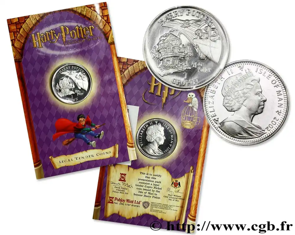 Type : 1 Crown Elisabeth II / Harry PotterDate : 2002Nom de l’atelier/ville : Pobjoy MintQuantité frappée : -Métal : cupro-nickelDiamètre : 38,5 mmTranche : canneléeRéférence ouvrage :KM21/- AversReversHistoriqueÎLE DE MAN