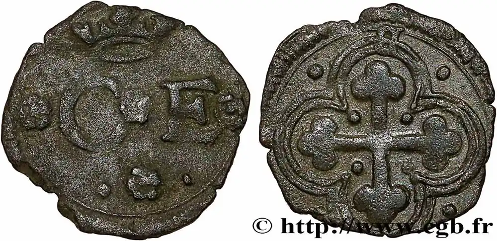 Type : Quart de sol (quarto di soldo)Date : n.d.Nom de l’atelier/ville : ChambéryMétal : billonDiamètre : 16 mmAxe des coins : 9 h.Poids : 1,12 g.Référence ouvrage :Bd.- – CNI/I.n° 533 p. 309 – Sim.I.83/3 p. 453 – Biaggin° 571 p. 809 – Cud.678d AversDescription avers : C*E couronné.Traduction avers : (Charles-Emmanuel).ReversDescription revers : Croix de saint Maurice cantonnée de quatre points, dans un double quadrilobe cantonné de quatre points ; au-dessous un C.CommentaireCe type monétaire fut frappé dans quatre ateliers : Aoste, Bourg-en-Bresse, Chambéry et Gex.HistoriqueSAVOIE – DUCHÉ DE SAVOIE – CHARLES-EMMANUEL Ier(30/08/1580-26/07/1630) Charles-Emmanuel Ier (1562-1630) est le fils d’Emmanuel-Philibert et de Marguerite de Valois, sœur d’Henri II qui est d’ailleurs mort au moment des fêtes données à l’occasion de leur mariage. Il succède à son père en 1580 et épouse Catherine de Habsbourg, fille de Philippe II d’Espagne en 1585. Après la mort d’Henri III, il soutient la Ligue et envahit la Provence en 1590. La guerre se termine par le traité de Vervins le 2 mai 1598 mais reprend en 1600 pour ne finir réellement qu’en 1601 par la paix de Lyon où le duc de Savoie se voit confirmer le marquisat de Saluzzo en échange de la Bresse, du Bugey et du pays de Gex qui sont annexés au royaume de France. À la mort de François de Gonzague, duc de Mantoue, Charles-Emmanuel revendique l’héritage du duché ; la guerre éclate contre l’Espagne en 1614 et se termine en 1617 par la paix de Madrid. La guerre reprend, avec la France cette fois, en 1628 après la mort de Ferdinand de Gonzague. Les Français envahirent la Savoie et le fort de Pignerol fut pris le 21 juillet 1630. Charles mourut cinq jours plus tard.