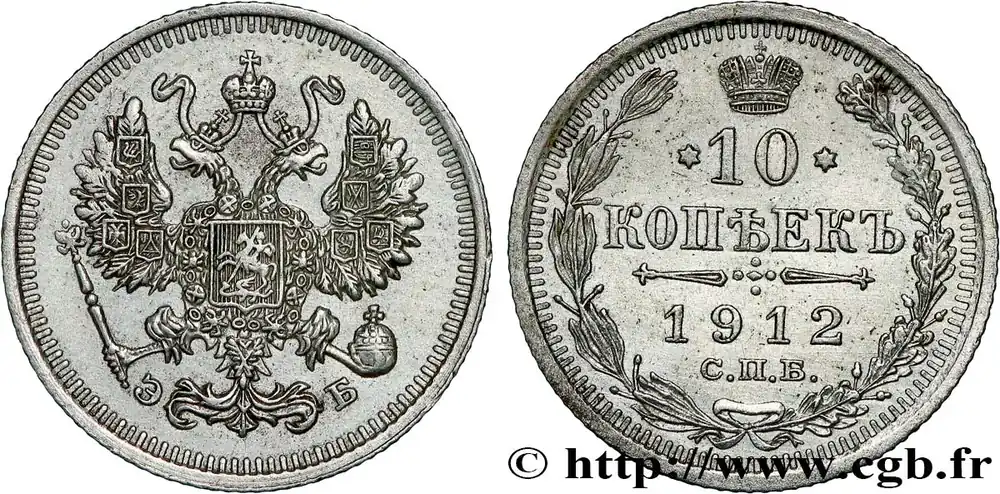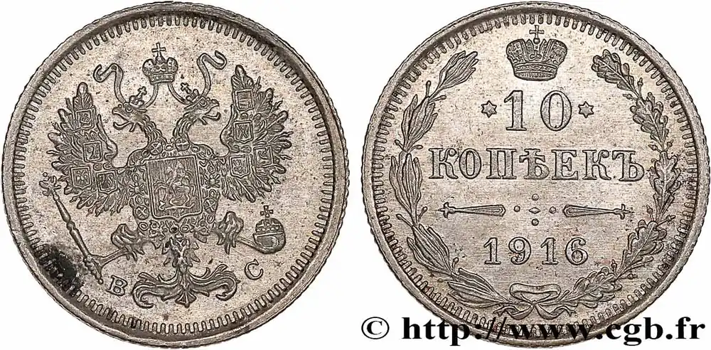 Type : 10 KopecksDate : 1935Quantité frappée : 122260000Métal : cupro-nickelDiamètre : 17,27 mmAxe des coins : 12 h.Poids : 1,79 g.Tranche : striéeRéférence ouvrage :KM20/102 AversTitulature avers : (LÉGENDE EN CYRILLIQUE) CCCP.Description avers : Emblème de l’URSS.ReversTitulature revers : (LÉGENDE EN CYRILLIQUE) 10 / КОП / 1935.Description revers : Dans le champ, branche de chêne et épi.HistoriqueRUSSIE – URSS(1922-1991) La Révolution de Février 1917 met fin au régime des tsars de Russie. La République Russe est renversée par les bolcheviks en Octobre 1917. Le 30 décembre 1922, est signé le traité relatif à la formation de l’Union des Républiques Socialistes Soviétiques (URSS). Bien que disposant d’un chef de l’état et d’un chef du gouvernement, l’URSS est en fait dirigé par le chef du Parti communiste de l’Union soviétique, seul parti autorisé entre 1925 et 1990.Le 8 décembre 1991, les présidents de Russie, d’Ukraine et de Biélorussie signent les Accord de Minsk qui proclame la dissolution de l’URSS par ses États fondateurs.
