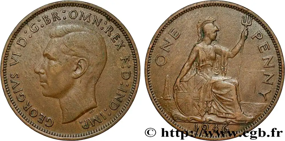 Type : 1 Penny Georges VIDate : 1947Nom de l’atelier/ville : Pretoria – SAQuantité frappée : 58980000Métal : cupro-nickelDiamètre : 30,5 mmAxe des coins : 12 h.Poids : 9,29 g.Tranche : lisseRéférence ouvrage :KM20/19 AversTitulature avers : GEORGIVS VI REX ET IND:IMP: / ONE PENNY 8// SA.Description avers : Couronne.ReversTitulature revers : BRITISH WEST AFRICA // · 1940 ·.Description revers : Étoile à six branches.CommentaireIntroduite en 1907, la Livre Ouest-Africaine circulait dans les colonies britanniques de l’Afrique de l’ouest : Nigeria, Gambie, Côte de l’Or (Ghana) et Sierra Leone. Elle était égale à la Livre Sterling et a circulé jusqu’en 1958 au Ghana et 1968 en Gambie..HistoriqueAFRIQUE OCCIDENTALE BRITANNIQUE