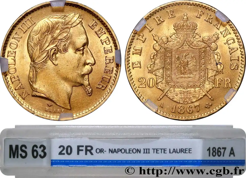 Type : 5 francs Napoléon Empereur, République françaiseDate : 1808Nom de l’atelier/ville : PerpignanQuantité frappée : 12.302Métal : argentDiamètre : 37 mmAxe des coins : 6 h.Poids : 24,50 g.Tranche : inscrite en creux * DIEU PROTEGE LA FRANCERéférence ouvrage :Classement FRANC 2023 / FRANC 2023 classificationF.306/12AversTitulature avers : NAPOLEON – EMPEREUR..Description avers : Tête laurée de Napoléon Ier à droite, signé BRENET sur la tranche du cou ; Tr. cursif au-dessous.ReversTitulature revers : RÉPUBLIQUE FRANÇAISE./ 5/ FRANCS./ (MM) 1808. Q.Description revers : dans une couronne formée de deux branches de laurier.CommentaireTranche B.HistoriquePREMIER EMPIRE(18/05/1804-6/04/1814) Renforcée par la conspiration de Cadoudal de mars 1804, l’idée du pouvoir héréditaire trouve son aboutissement le 18 mai 1804 lorsque Napoléon Bonaparte devient empereur des Français sous le nom de Napoléon Ier. Ratifié par plébiscite, l’Empire est consacré le 2 décembre 1804 lors du sacre de Notre-Dame. La Constitution de l’an XII étant toujours en vigueur, le Premier Empire semble fonctionner comme une continuation de la République française dirigée par un empereur. C’est en réalité une dictature personnelle où l’empereur nomme et révoque les ministres, a l’initiative des lois et contrôle le Corps législatif. Dans les départements, les préfets renseignent le ministère de l’Intérieur. Les postes, la presse, l’imprimerie sont contrôlées par la censure. Les grands corps de l’Etat sont réorganisés ainsi que la Justice avec le Code pénal qui complète le Code civil achevé sous le Consulat. Universités et écoles sont encadrées. En 1805, Napoléon devient roi d’Italie tandis que se forment des coalitions contre l’Empire. Malgré la défaite navale de Trafalgar, les armées impériales remportent de nombreuses victoires terrestres comme Austerlitz, Iéna ou Eylau qui assurent le contrôle de l’Europe continentale. Démembrée, celle-ci est attribuée à la famille Bonaparte qui semble triompher partout. Fortifiée par le blocus continental, l’industrie est prospère mais le commerce souffre. En 1808, le blocus continental est renforcé par un second décret pris à Milan en date du 17 décembre 1807. La guerre d’Espagne débute après que Junot ait conquis le Portugal qui refusait d’appliquer le blocus. Rapidement, les Madrilènes se soulèvent contre l’occupation française de Murat. Les 1er et 2 mai, les français répriment avec férocité des mouvements de guérilla. Des exécutions massives ont lieu. Elles sont immortalisées par Goya dans son célèbre Primer y Dos de Mayo. Joseph, roi de Naples, est nommé roi d’Espagne à contrecœur. Murat le remplace sur le trône de Naples avec sa femme Caroline. Malgré les abdications forcées de Charles IV et de Ferdinand VII à Bayonne, en présence de Napoléon, les Français assistent à un soulèvement général en Espagne et sont battus à Bailen le 22 juillet : ils perdent Madrid. Wellington et un corps expéditionnaire anglais débarquent au Portugal le 1er août. Junot doit capituler à Cintra le 30 août. Les Français reprennent Madrid le 4 décembre 1808. En avril 1809, Pie VII excommunie Napoléon qui le fait séquestrer en représailles. Les alliés forment la cinquième coalition, mais les Autrichiens sont battus à Eckmühl le 12 avril, Essling le 21 mai et Wagram le 6 juillet 1809. Au traité de Vienne, l’Autriche cède la Carniole, la Carinthie et la Croatie qui vont former les provinces illyriennes qui sont incorporées à l’Empire. La colonne Vendôme est inaugurée en 1810. Cette année là, Napoléon est au faîte de sa puissance et la France compte 130 départements du Tibre à l’Elbe. Après avoir divorcé d’avec Joséphine en décembre 1809, il épouse Marie-Louise d’Autriche le 2 avril 1810. Louis abdique du trône de Hollande, le 9 juillet 1810, refusant d’appliquer le Blocus Continental et le Royaume est annexé à la France. En 1811, l’Empereur, qui a fait dissoudre son mariage avec Joséphine, épouse l’archiduchesse Marie-Louise qui lui donne un fils, le roi de Rome qui naît aux Tuileries le 20 mars 1811. Les relations franco-russes se sont détériorées après le mariage autrichien. Finalement, Napoléon franchit le Niémen le 24 juin 1812. C’est le début de la campagne de Russie. À la tête de la Grande Armée, il prend Vilna (28 juin), remporte la victoire de Smolensk (18 août), puis la difficile bataille de la Moscova (5-7 septembre). Il prend Moscou entre le 15 et le 18 septembre. La ville est incendiée par les Russes et les Français doivent l’évacuer. La Grande Armée est obligée de faire retraite avec l’hiver russe qui commence très tôt et un ennemi qui pratique la politique de la terre brûlée. C’est la bataille de la Berezina le 27-29 novembre 1812. Sur 600.000 hommes, moins de 30.000 repassent la frontière russe. Le Général Malet tente un coup d’état à Paris le 23 octobre. Il est fusillé le 29. Les Russes occupent Varsovie, Hambourg et Dresde. Les Prussiens remportent les victoires de Lutzen et Bautzen les 2 et 21 mai 1813. Toute l’Europe se ligue contre Napoléon lors de la sixième coalition et il est battu à la bataille des Nations le 16-19 octobre 1813. La campagne de France commence en janvier 1814. Malgré les victoires de Montmirail et de Montereau les 10 et 18 février, Napoléon ne peut empêcher la capitulation de Paris le 31 mars. Il est contraint d’abdiquer le 6 avril 1814 et part sur l’île d’Elbe.