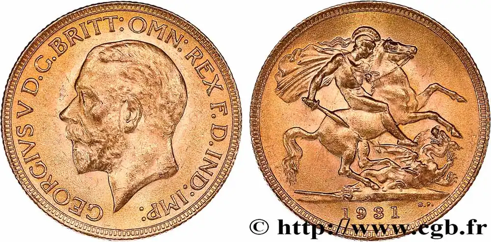 Type : 1 Souverain Georges VDate : 1911Nom de l’atelier/ville : LondresQuantité frappée : 30044000Métal : orTitre en millième : 917 ‰Diamètre : 22 mmAxe des coins : 12 h.Poids : 7,98 g.Tranche : canneléeCommentaires sur l’état de conservation :Traces de nettoyageRéférence ouvrage :Sp.3996  – KM20/820 AversTitulature avers : GEORGIVS V D G BRITT: OMN: REX F. D. IND: IMP:.Description avers : Tête nue de Georges V à gauche.Traduction avers : (Georges V par la grâce de Dieu roi de tous les Bretons, défenseur de la Foi, empereur des Indes).ReversTitulature revers : 1911 À L’EXERGUE.Description revers : Saint Georges, nu, casqué, le manteau flottant sur l’épaule, tenant un glaive de la main droite, galopant à droite, terrassant un dragon.HistoriqueOR, PALLADIUM ET PLATINE INVESTISSEMENTSécurisez et diversifiez votre épargne avec les métaux précieux :Dans un contexte d’instabilité politique et économique croissante, diversifier son épargne peut être une démarche judicieuse. Les métaux précieux comme l’or, le palladium et le platine constituent des actifs tangibles souvent prisés en raison de leur caractère intemporel et de leur résilience face aux fluctuations des marchés.Pour répondre à des besoins variés, l’achat de pièces officielles en or, palladium ou platine est une option flexible et adaptée. Ces pièces, disponibles à l’unité ou en lot, permettent à chacun d’ajuster ses choix selon ses objectifs et son budget, sans engagement à long terme.Un processus simple et sécurisé :Nous proposons une livraison sécurisée et garantie. Les paiements peuvent être effectués par carte bancaire ou par virement, bien que certaines transactions puissent nécessiter un règlement exclusivement par virement bancaire. Une pièce d’identité valide (carte nationale d’identité ou passeport) sera demandée pour finaliser votre achat.Stockage en toute sécurité et confidentialité :Le département Investissement de CGB Numismatique Paris met à votre disposition des solutions de stockage offrant une sécurité renforcée et une confidentialité optimale pour vos achats en or, palladium et platine.Contactez-nous pour plus d’informations :Pour toute question ou pour passer commande, prenez contact avec notre responsable des achats/ventes de métaux précieux : par email à [email protected] ou par téléphone. Nous mettons à votre disposition des informations générales et des services pour vous accompagner dans vos projets d’investissement.CGB Numismatique Paris agit en tant que fournisseur de métaux précieux et ne fournit aucun conseil en investissement. La valeur des métaux précieux peut fluctuer, et les performances passées ne garantissent pas les résultats futurs. L’achat de métaux précieux doit être considéré comme une stratégie de préservation de valeur plutôt qu’un investissement spéculatif. Conformément à l’article L.221-28 du Code de la consommation, le droit de rétractation ne s’applique pas aux achats d’or d’investissement, dont le prix dépend des fluctuations des marchés financiers.