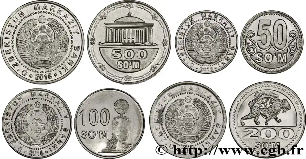 OUZBEKISTAN Lot de 4 monnaies 50, 100, 200 et 500 Som 2018 fwo_751180 Monde Dernière Chance
