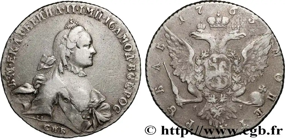Type : RoubleDate : 1867Nom de l’atelier/ville : Saint-PetersbourgQuantité frappée : 425000Métal : argentTitre en millième : 868 ‰Diamètre : 36 mmAxe des coins : 12 h.Poids : 20,54 g.Tranche : inscrite en creux en cyrillique (Argent au titre de 83 1/3 4 zolotniks 41 14/25 dolas)Degré de rareté : R1Commentaires sur l’état de conservation :La monnaie a été nettoyée (cleaned)Référence ouvrage :KM.19/25 – SEM.80 – WOL AversTitulature avers : (LÉGENDE CYRILLIQUE).Description avers : Aigle bicéphale couronné timbré d’un écu aux armes de Moscou entouré du collier de l’ordre de Saint-André et des écussons de Kazan, Astrakan et Sibérie sur l’aile gauche et de Pologne, de Tauride et de Finlande sur l’aile droite.Traduction avers : (Argent au titre de 83 1/3 4 zolotniks 41 14/25 dolas).ReversTitulature revers : (LÉGENDE CYRILLIQUE).Description revers : Au centre en trois lignes : ROUBLE / 1867.Traduction revers : (Rouble / 1865 / Saint-Pétersbourg).CommentaireCe type fut frappé entre 1859 et 1885 sous les règnes d’Alexandre II et d’Alexandre III.HistoriqueRUSSIE – ALEXANDRE II(2/03/1855-13/03/1881) Alexandre II Nikolaïevitch (29/04/1818-13/03/1881), fils de Nicolas et d’Alexandra de Prusse, succède à son père, termine la guerre de Crimée et signe le traité de Paris. Réformateur, il émancipe les serfs et essaie de moderniser le pays. Autocrate, il écrase la révolte polonaise de 1863. Politiquement, il favorise le panslavisme et lutte efficacement contre la Turquie qu’il écrase en 1876-1878. Le traité de San Stefano et le congrès de Berlin en 1878 marquent le retour fracassant de la Russie sur la scène politique internationale. Les Russes et les Austro-Hongrois contrôlent désormais les Balkans. Alexandre II périt déchiqueté par une bombe près du palais Mikhaïlovski en 1881.