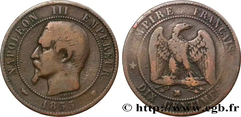 Type : 50 centimes Francisque, légèreDate : 1944Nom de l’atelier/ville : Beaumont-Le-RogerQuantité frappée : 27.334.000Métal : aluminiumDiamètre : 18 mm mmAxe des coins : 6 h.Poids : 0,70 g.Tranche : lisseCommentaires sur l’état de conservation :Des traces de coupsRéférence ouvrage :Classement FRANC 2023 / FRANC 2023 classificationF.196/5AversTitulature avers : ETAT FRANÇAIS.Description avers : Accostée de deux épis de blé, une francisque dont le manche est constitué par un bâton de maréchal orné de dix étoiles à cinq rais, portant en haut S. PACIS et en bas PETAIN, et les fers de trois bandes en drapeau français ; à droite de la francisque le monogramme LB pour Lucien Bazor.ReversTitulature revers : .TRAVAIL . FAMILLE. / .PATRIE..Description revers : 50 / CENTIMES au-dessus du millésime encadré des différents, accosté de deux rameaux de chêne, chacun étant composé de quatre feuilles et d’un gland.HistoriqueÉTAT FRANÇAIS(10/07/1940-26/08/1944) Né de l’effondrement de la Troisième République consécutif à la défaite française de mai-juin 1940, l’État français est fondé par un vote du Parlement réuni en Assemblée nationale à Vichy le 10 juillet 1940. L’Assemblée nationale par 569 oui, 80 non et 17 abstentions donne « tous pouvoirs au gouvernement de la République, sous l’autorité et la signature du maréchal Pétain, à l’effet de promulguer par un ou plusieurs actes une nouvelle constitution de l’État français ». Cette constitution doit « garantir les droits du Travail, de la Famille et de la Patrie ». Par six actes de 1940, la présidence de la République est supprimée au profit du maréchal Pétain, chef de l’État français. Une cour suprême de justice est créée. Le maréchal Pétain exerce un plein pouvoir non seulement gouvernemental mais aussi législatif puisqu’il nomme et révoque les ministres, et, il nomme à tous les emplois civils ou militaires. Il dispose aussi de la justice et de la force armée. Il négocie et ratifie les traités. À partir de 1941, tous les fonctionnaires doivent prêter serment au chef de l’État. Une réforme morale et intellectuelle s’attaque au divorce, à l’avortement, à l’alcoolisme, interdit la franc-maçonnerie et crée un commissariat aux Affaires Juives. Les syndicats sont supprimés et remplacés par un système corporatif. La famille est soutenue et la retraite des travailleurs est instituée. L’entrevue de Montoire du 24 octobre 1940 engage la France dans la voie de la collaboration qui devient totale dès juin 1941 avec les attentats de la résistance communiste. L’État français s’engage aussi aux côtés de l’Allemagne dans une croisade anti-bolchevique. Après la perte progressive de l’Empire, la zone sud est occupée par les Allemands provoquant le sabordage de la flotte à Toulon. Avec l’instauration du Service du Travail Obligatoire (S.T.O.), la résistance voit ses rangs augmenter. Les attentats, et leur répression, augmentent tandis que se forme le Conseil national de la Résistance. Le débarquement et les soulèvements de la résistance permettent au Gouvernement provisoire de la République française d’accroître son contrôle. Le 20 août 1944, le maréchal Pétain est emmené à Sigmaringen par les Allemands. Le 25, la division Leclerc est la première à entrer dans Paris en état d’insurrection, sonnant ainsi le glas du régime de Vichy.