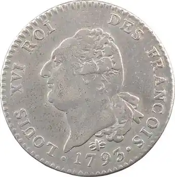 Louis XIV, demi-écu à la cravate, 2e émission, 1681 Bayonne. A/ LVD. XIIII. D. G (différent) – FR. ET. NA. REX. Buste du Roi à droite, drapé et cuirassé, avec le cordon de l'ordre du Saint-Esprit et une cravate brodée, portant la perruque. R/ (différent) SIT. NOMEN. DOMINI. BENEDICTVM. (date). Écu de France couronné ;