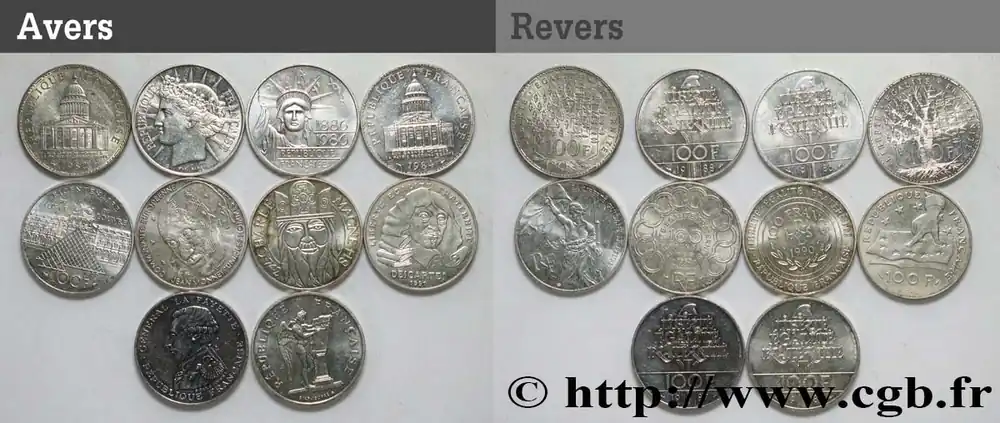 Type : Essai de 10 francs JimenezDate : 1986Nom de l’atelier/ville : PessacQuantité frappée : 1.850Métal : nickelDiamètre : 21 mmAxe des coins : 6 h.Poids : 6,50 g.Tranche : lisse et canneléeRéférence ouvrage :Classement FRANC 2023 / FRANC 2023 classificationF.373/1 – GEM.194 11AversTitulature avers : LIBERTÉ ÉGALITÉ FRATERNITÉ EN CURSIVE / (DIFFÉRENT) (DIFFÉRENT).Description avers : Tête de Marianne aux cheveux courts à gauche couronnée de blé et de laurier, brochant une carte de la France stylisée.ReversTitulature revers : RÉPUBLIQUE FRANÇAISE // 10 F / 1986.Description revers : Coq à droite stylisé en arcs de cercle, signé JIMENEZ et rosette de l’Atelier de Gravure.CommentaireExemplaire sous sachet plastique scellé.HistoriqueCINQUIÈME RÉPUBLIQUE(depuis le 08/01/1959) La Cinquième République, dont la constitution a été approuvée par référendum le 28 septembre 1958 par plus de 79 % des Français, ne débute officiellement qu’avec l’installation du général de Gaulle comme président le 8 janvier 1959. La constitution est modifiée le 28 octobre 1962 par référendum où une majorité de 62 % des voix approuve l’élection du président de la République au suffrage universel direct. Les différents présidents de la Ve République sont Charles de Gaulle (8/01/1959 – 27/04/1969, retrait et Alain Poher devient président par intérim), Georges Pompidou (15/06/1969 – 2/04/1974, décédé, Alain Poher devient président par intérim), Valéry Giscard d’Estaing (19/05/1974 – 21/05/1981), François Mitterrand (21/05/1981 – 7/05/1995), Jacques Chirac (7/05/1995 – 16/05/2007) , Nicolas Sarkozy (16/05/2007 – 15/05/2012), François Hollande (15/05/2012 – 14/05/2017) et Emmanuel Macron (14/05/2017 – ).
