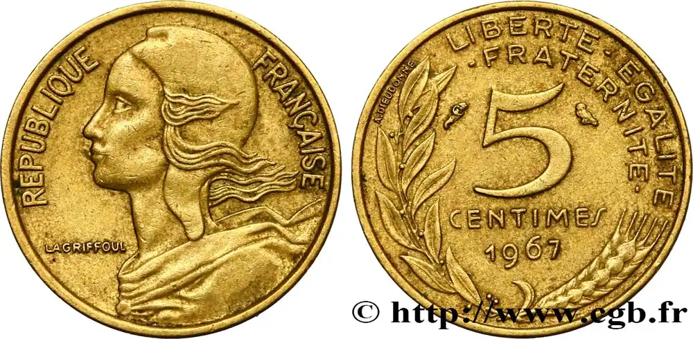 Type : 1 franc De GaulleDate : 1988Quantité frappée : 49.917.011Métal : nickelDiamètre : 24 mmAxe des coins : 6 h.Poids : 6 g.Tranche : striéeRéférence ouvrage :Classement FRANC 2023 / FRANC 2023 classificationF.227/2AversTitulature avers : (CROIX DE LORRAINE) CHARLES DE GAULLE (CROIX DE LORRAINE) / RÉPUBLIQUE FRANÇAISE.Description avers : tête nue de Charles de Gaulle à droite ; au-dessous ER : légende ponctuée de croix de Lorraine.ReversTitulature revers : LIBERTÉ . ÉGALITÉ . FRATERNITÉ / (CORNE D’ABONDANCE) 1958 .1988 (DAUPHIN).Description revers : 1 F. dans un hexagone tracé en épaisseur par cinq traits juxtaposés, représentant la France.CommentaireExemplaire sous capsule issu d’une série Fleurs De Coins.HistoriqueCINQUIÈME RÉPUBLIQUE(depuis le 08/01/1959) La Cinquième République, dont la constitution a été approuvée par référendum le 28 septembre 1958 par plus de 79 % des Français, ne débute officiellement qu’avec l’installation du général de Gaulle comme président le 8 janvier 1959. La constitution est modifiée le 28 octobre 1962 par référendum où une majorité de 62 % des voix approuve l’élection du président de la République au suffrage universel direct. Les différents présidents de la Ve République sont Charles de Gaulle (8/01/1959 – 27/04/1969, retrait et Alain Poher devient président par intérim), Georges Pompidou (15/06/1969 – 2/04/1974, décédé, Alain Poher devient président par intérim), Valéry Giscard d’Estaing (19/05/1974 – 21/05/1981), François Mitterrand (21/05/1981 – 7/05/1995), Jacques Chirac (7/05/1995 – 16/05/2007) , Nicolas Sarkozy (16/05/2007 – 15/05/2012), François Hollande (15/05/2012 – 14/05/2017) et Emmanuel Macron (14/05/2017 – ).