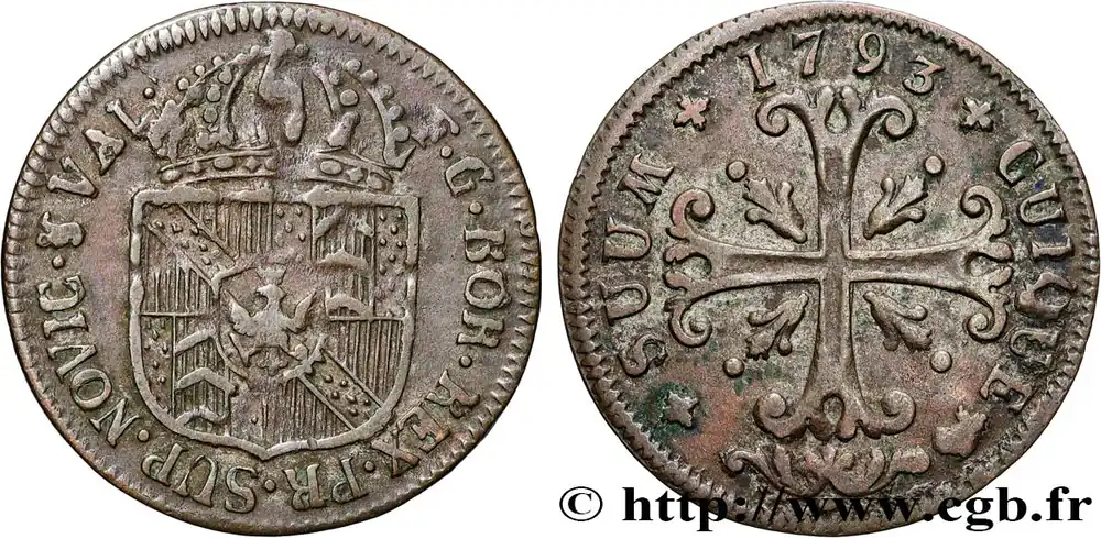 Type : 1/2 BatzenDate : 1798Nom de l’atelier/ville : BerneQuantité frappée : -Métal : billonDiamètre : 23 mmAxe des coins : 6 h.Poids : 1,97 g.Référence ouvrage :HMZ.2-224x  – KM18/91 AversTitulature avers : MONETA REIPUBLICAE. BERNENSIS.Description avers : Écu festonné aux armes de Berne.ReversTitulature revers : DOMINUS PROVIDEBIT 1798.Description revers : Croix échancrée.HistoriqueSUISSE – CANTON DE BERNELa Suisse est rentrée dans l’orbite française depuis 1799 après la défaite de Zürich contre Souvarov. Un système de République « Sœur » est imposé aux Cantons et Genève est annexée à la France. La Confédération Helvètique quitte l’alliance française en 1813 et recouvre son indépendance et les cantons leur liberté. Berne, qui avait été un poste militaire dès 1191 avant de devenir une ville impériale, reçoit le droit de frapper monnaie en 1218 et entre dans la Confédération en 1353.