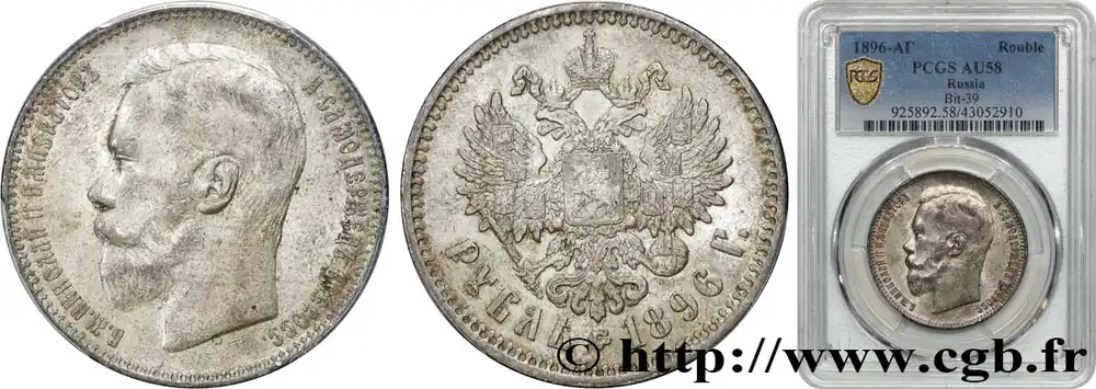 Type : 1 Rouble Date : 1851Nom de l’atelier/ville : Saint-PetersbourgMétal : argentTitre en millième : 868 ‰Diamètre : 36 mmAxe des coins : 12 h.Poids : 20,63 g.Tranche : décoréeCommentaires sur l’état de conservation :De petits coups sur la trancheRéférence ouvrage :KM.19/168.1 AversTitulature avers : (LÉGENDE CYRILLIQUE).Description avers : Aigle bicéphale couronné.ReversTitulature revers : (LÉGENDE CYRILLIQUE).Description revers : Légende sur 3 lignes.Traduction revers : (Monnaie rouble).HistoriqueRUSSIE – NICOLAS Ier(1/12/1825-2/03/1855) Nicolas Ier (7/07/1796-2/03/1855), second fils de Paul Ier, est le frère d’Alexandre Ier et du grand-duc Constantin. À la mort de son frère Alexandre Ier, le 1er décembre 1825, et après le renoncement de son frère Constantin, il devient tsar de toutes les Russies et commence par réprimer le mouvement libéral des Décembristes puis le soulèvement de Pologne en 1831. Après avoir favorisé la libération de la Grèce, il se pose comme un défenseur des Slaves et s’oppose aux Turcs. Il trouve sur sa route les Anglais et les Français. Il meurt avant la défaite de la guerre de Crimée.