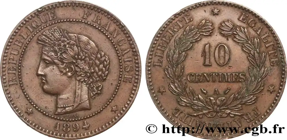Type : 10 francs Mathieu, Tranche BDate : 1977Nom de l’atelier/ville : PessacQuantité frappée : —Métal : cupro-nickel-aluminiumDiamètre : 26 mmAxe des coins : 6 h.Poids : 10 g.Tranche : en creux. (branche de laurier) LIBERTE (branche d’olivier) EGALITE (épi) FRATERNITERéférence ouvrage :Classement FRANC 2023 / FRANC 2023 classificationF.365/5AversTitulature avers : REPUBLIQUE FRANÇAISE / 1977 ENCADRÉ DES DIFFÉRENTS.Description avers : Carte de France rayonnante avec au centre RF en majuscules entrelacées ; signé Mathieu dans le champ gauche.ReversTitulature revers : 10 FRANCS.Description revers : Représentations stylisées d’une France industrielle, formes de grues, de pylones et de bâtiments.CommentaireTranche B. Tranche lisible la valeur faciale le revers vers le haut.Exemplaire sous capsule et provenant d’une boîte Fleurs De Coins.HistoriqueCINQUIÈME RÉPUBLIQUE(depuis le 08/01/1959) La Cinquième République, dont la constitution a été approuvée par référendum le 28 septembre 1958 par plus de 79 % des Français, ne débute officiellement qu’avec l’installation du général de Gaulle comme président le 8 janvier 1959. La constitution est modifiée le 28 octobre 1962 par référendum où une majorité de 62 % des voix approuve l’élection du président de la République au suffrage universel direct. Les différents présidents de la Ve République sont Charles de Gaulle (8/01/1959 – 27/04/1969, retrait et Alain Poher devient président par intérim), Georges Pompidou (15/06/1969 – 2/04/1974, décédé, Alain Poher devient président par intérim), Valéry Giscard d’Estaing (19/05/1974 – 21/05/1981), François Mitterrand (21/05/1981 – 7/05/1995), Jacques Chirac (7/05/1995 – 16/05/2007) , Nicolas Sarkozy (16/05/2007 – 15/05/2012), François Hollande (15/05/2012 – 14/05/2017) et Emmanuel Macron (14/05/2017 – ).