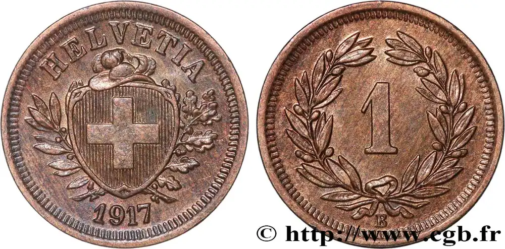 Type : 1 Centime (Rappen) Croix SuisseDate : 1937Nom de l’atelier/ville : BerneQuantité frappée : 2400000Métal : bronzeDiamètre : 16 mmAxe des coins : 12 h.Poids : 1,50 g.Tranche : lisseRéférence ouvrage :KM20/3.2 – HMZ.2-1215ooo AversTitulature avers : HELVETIA // 1937.Description avers : écu à la croix entre deux rameaux surmonté d’un chapeau.ReversTitulature revers : 1 / B.Description revers : dans le champ entre deux rameaux de laurier.HistoriqueSUISSE